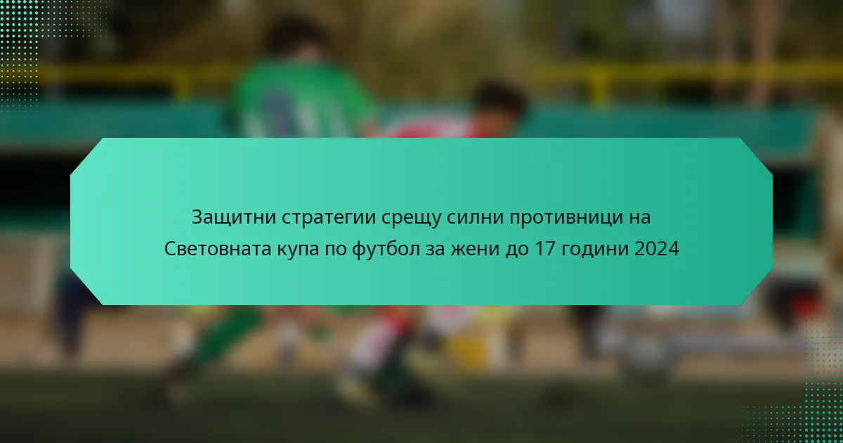 Ефективните защитни стратегии в Световната купа на ФИФА за жени до 17 години 2024 г. се фокусират върху формации, позициониране на играчите и комуникация, за да контрират силни противници. Отборите трябва да адаптират тактиката си в зависимост от силните страни на съперниците, докато използват техники на натиск и контратакуващ натиск, за да възвърнат владението.