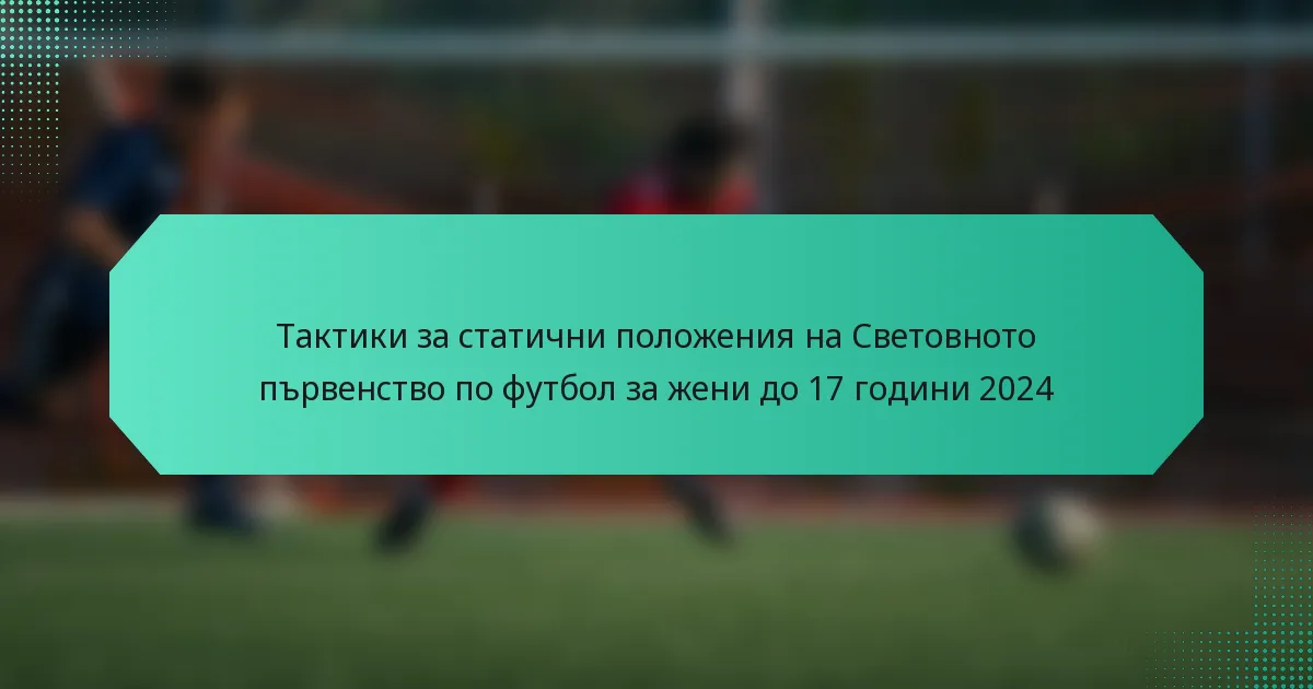 Стратегиите за статични положения в футбола са съществени за създаването на възможности за гол по време на спирания в играта, като свободни удари и корнери. На Световното първенство по футбол за жени до 17 години на FIFA 2024, тези тактики могат значително да повлияят на резултатите от мачовете, тъй като отборите разработват организирани игри, съобразени със силните страни и формациите на своите играчи. Еволюцията на тези стратегии отразява преход към по-сложни и разнообразни подходи, увеличавайки общото вълнение и конкурентоспособността на турнира.