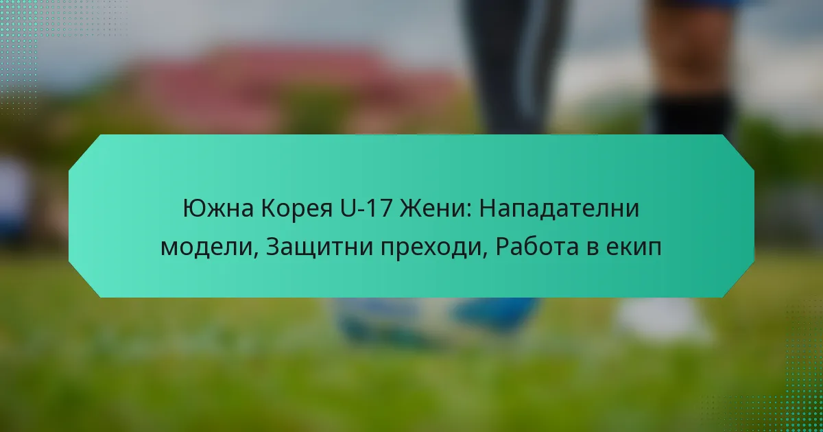 Женският отбор на Южна Корея до 17 години демонстрира силни динамики на екипната работа, които подобряват представянето им на терена. Ключовите аспекти включват ефективна комуникация, стратегическо позициониране, лидерски роли и сътрудничество между играчите, които всички допринасят за общия им успех в мачовете.